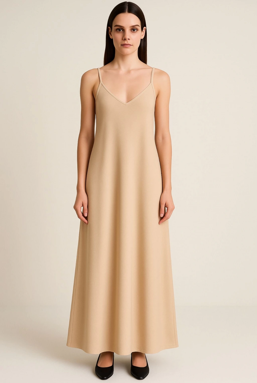 Bej Askılı Elbise