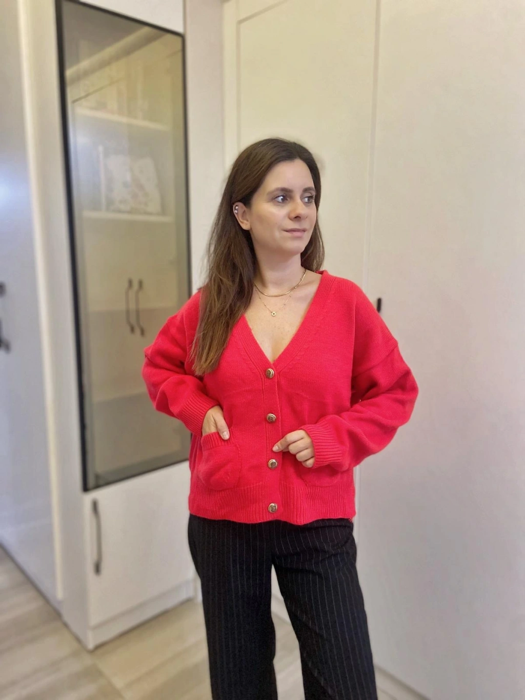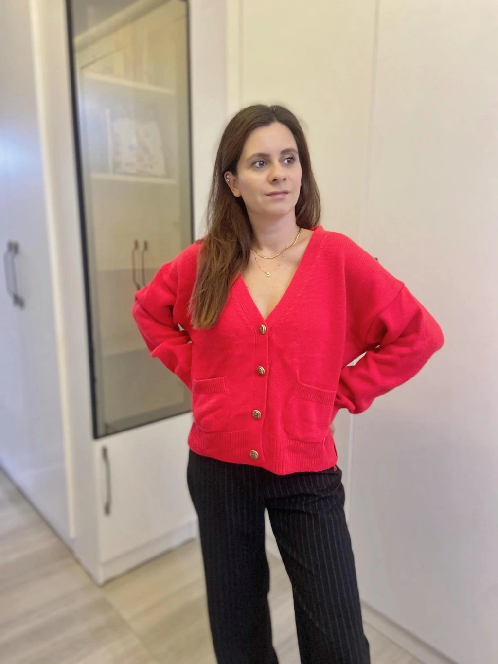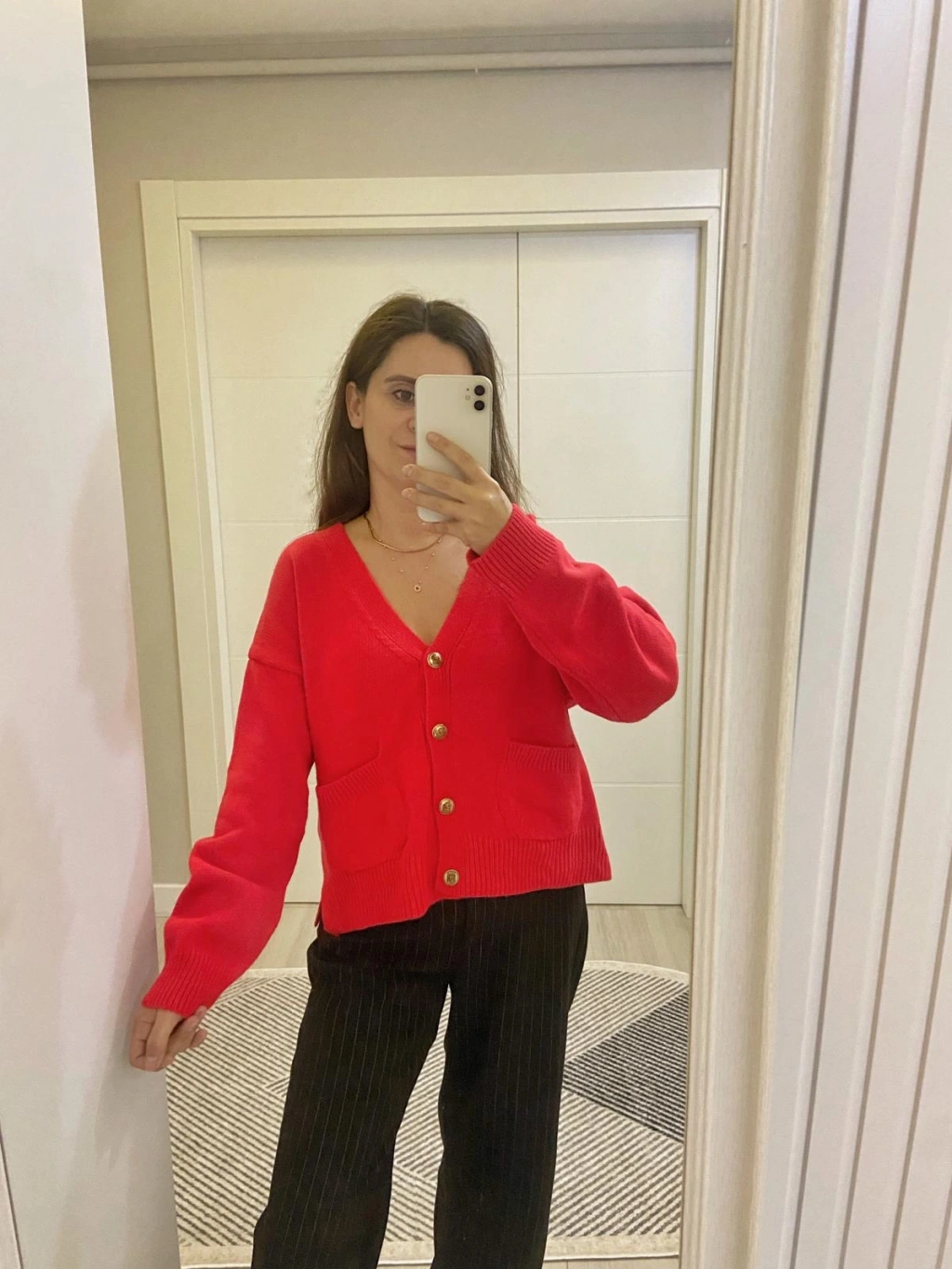 Kırmızı Gold Düğmeli Hırka