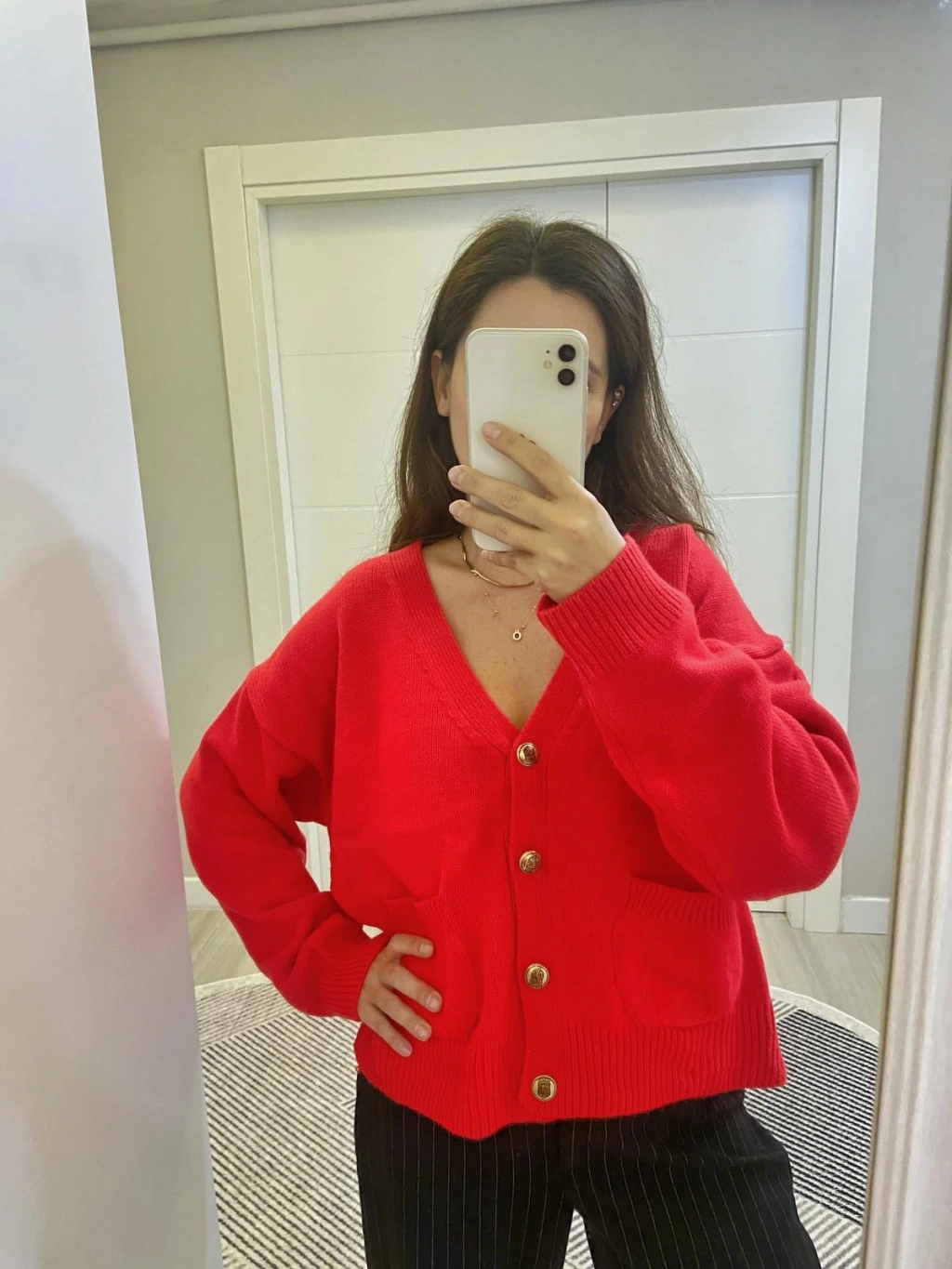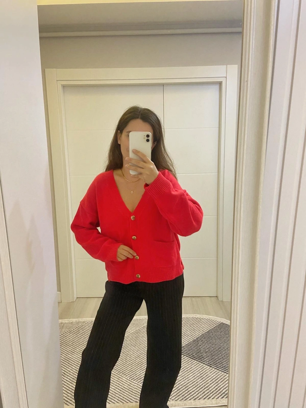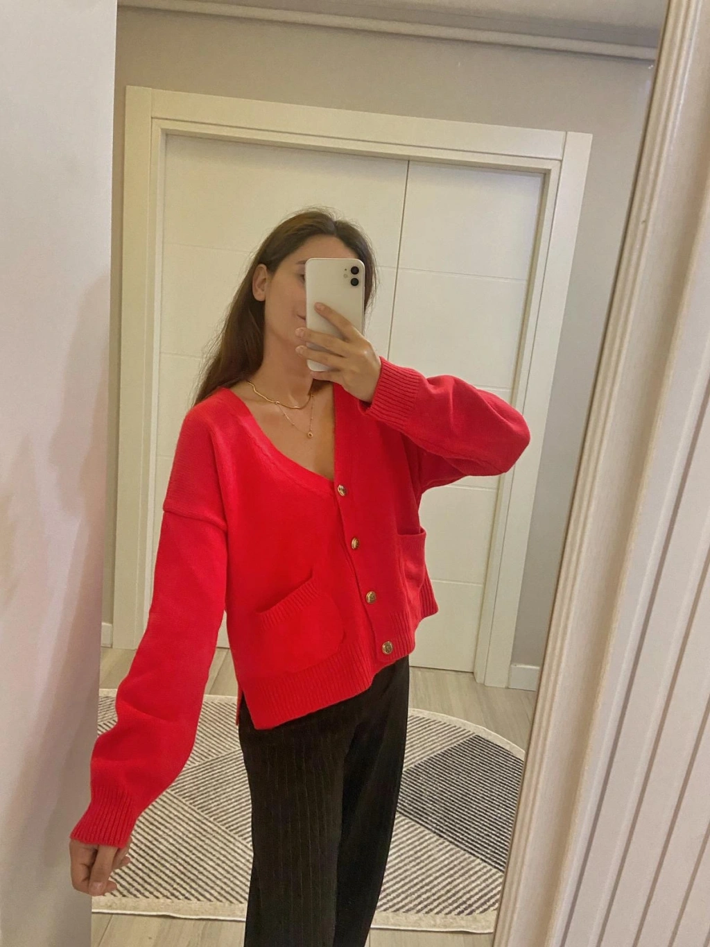 Kırmızı Gold Düğmeli Hırka