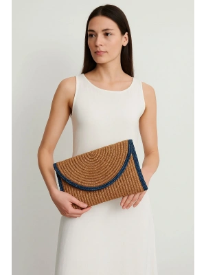 Lacivert Detaylı Hasır Çanta