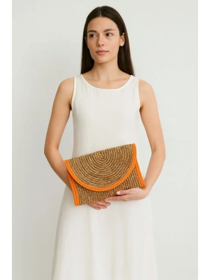 Turuncu Detaylı Hasır Çanta