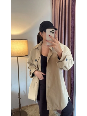 Krem Kısa Trençkot