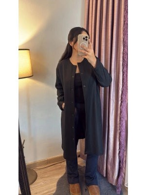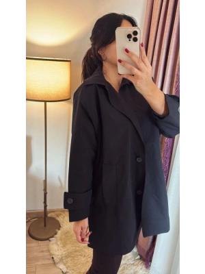 Siyah Kısa Trençkot