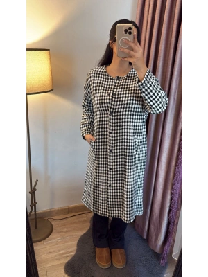 Siyah Kareli Uzun Elbise