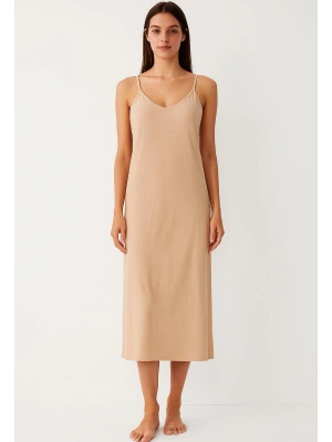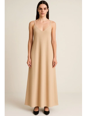 Bej Askılı Elbise