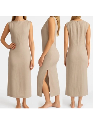 Krem Yırtmaçlı Elbise