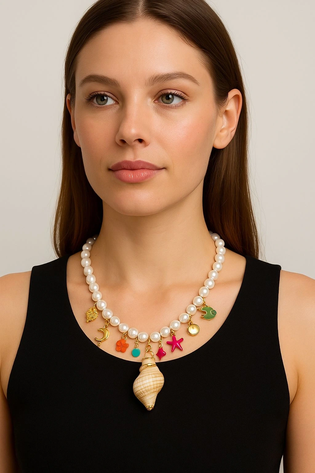 İnci ve Deniz Kabuğu Detaylı Kolye