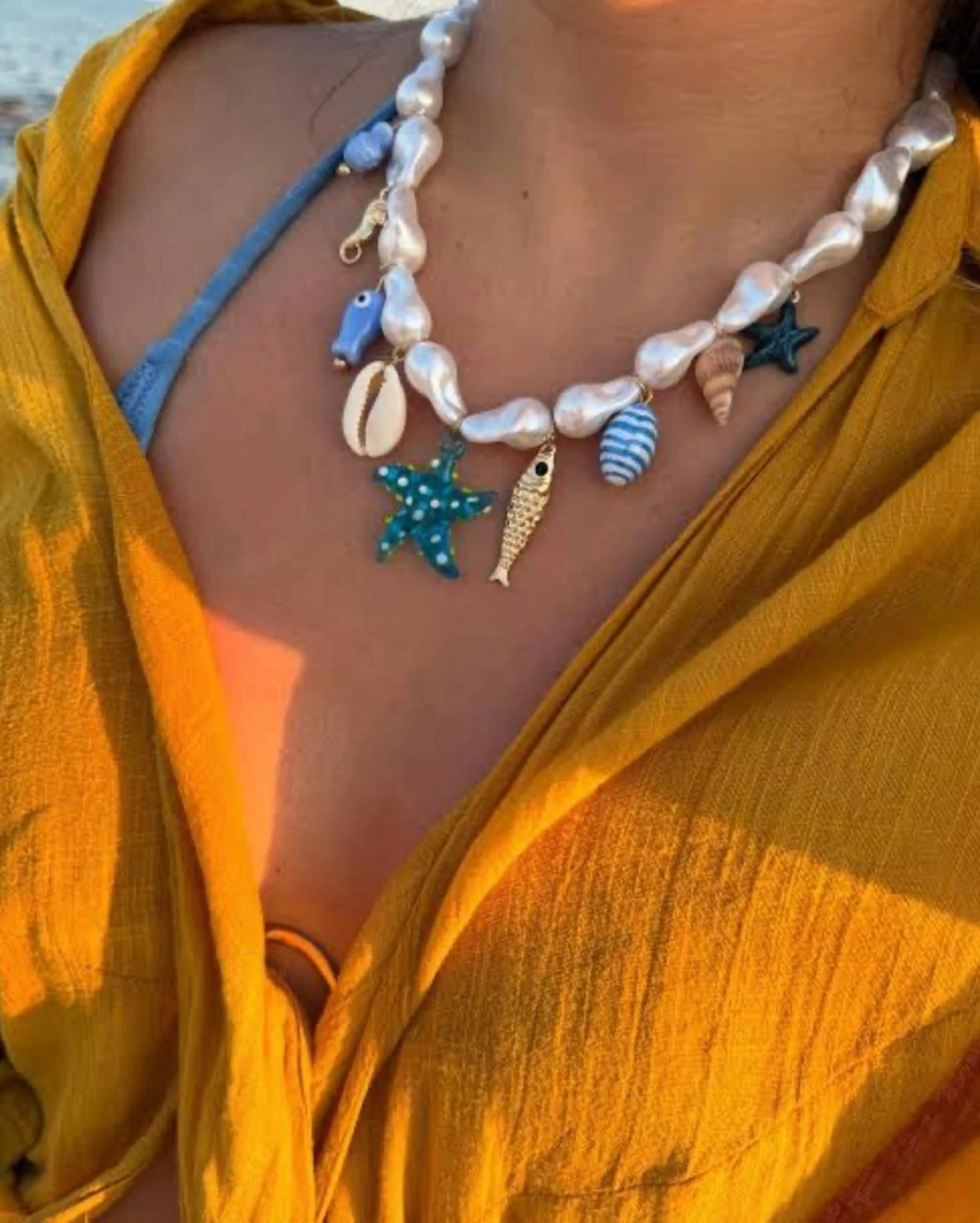 Mavi Yıldız ve Balık Detaylı Kolye