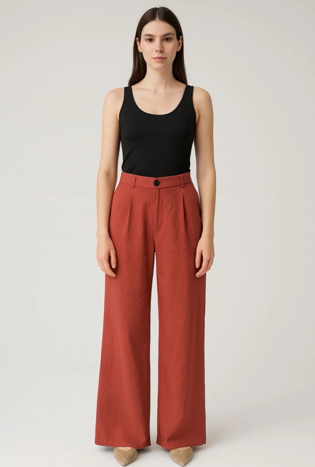 Düz Kemer Tek Düğmeli Bej Pantolon