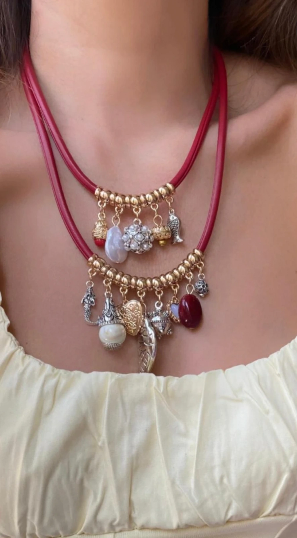 Kırmızılı Charm Kolye