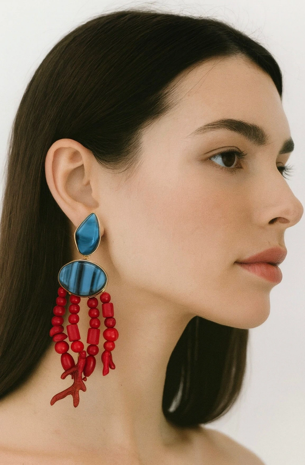 Kırmızı ve Mavi Taşlı Küpe