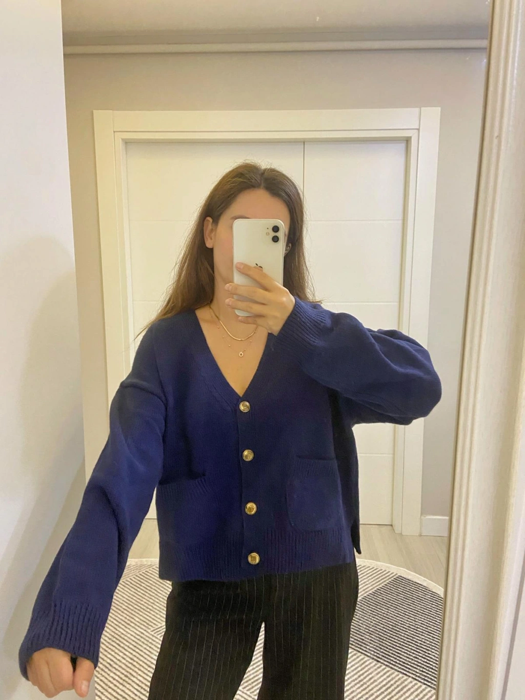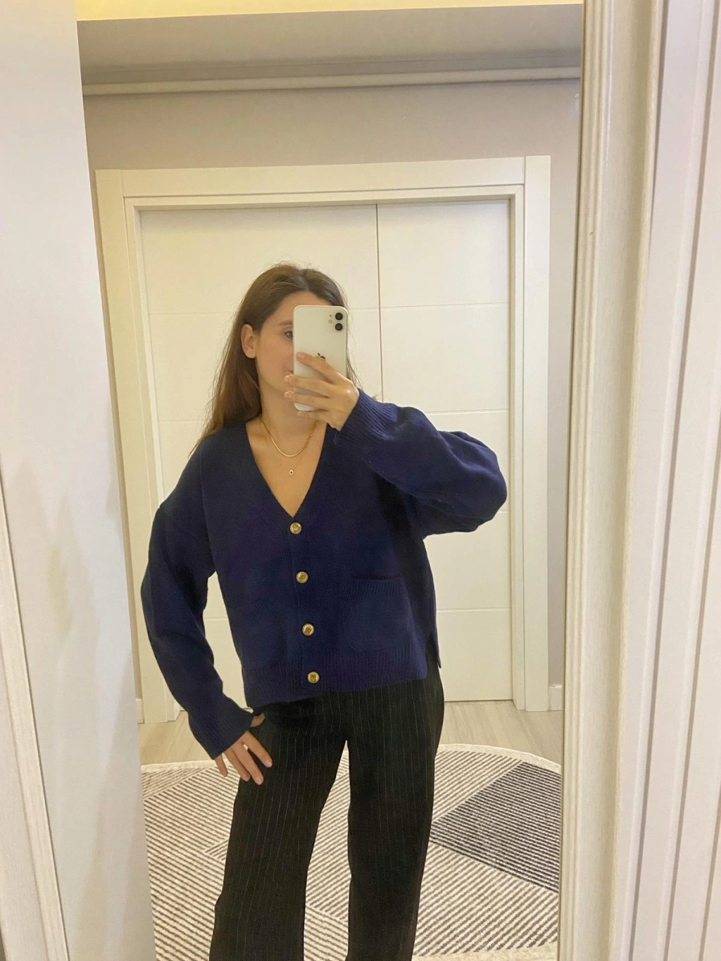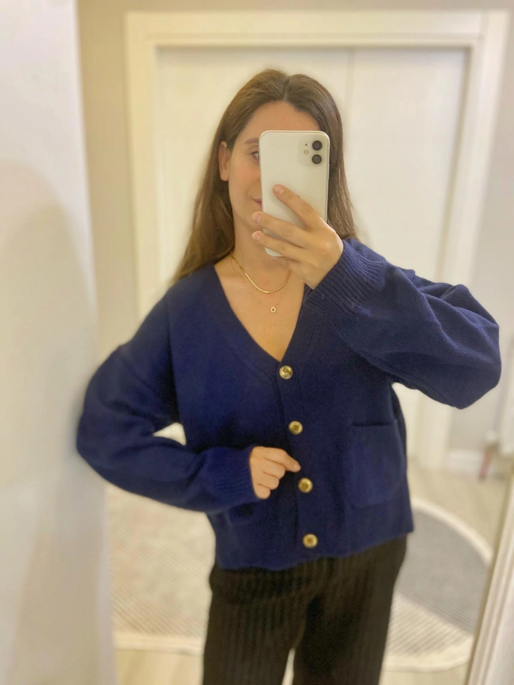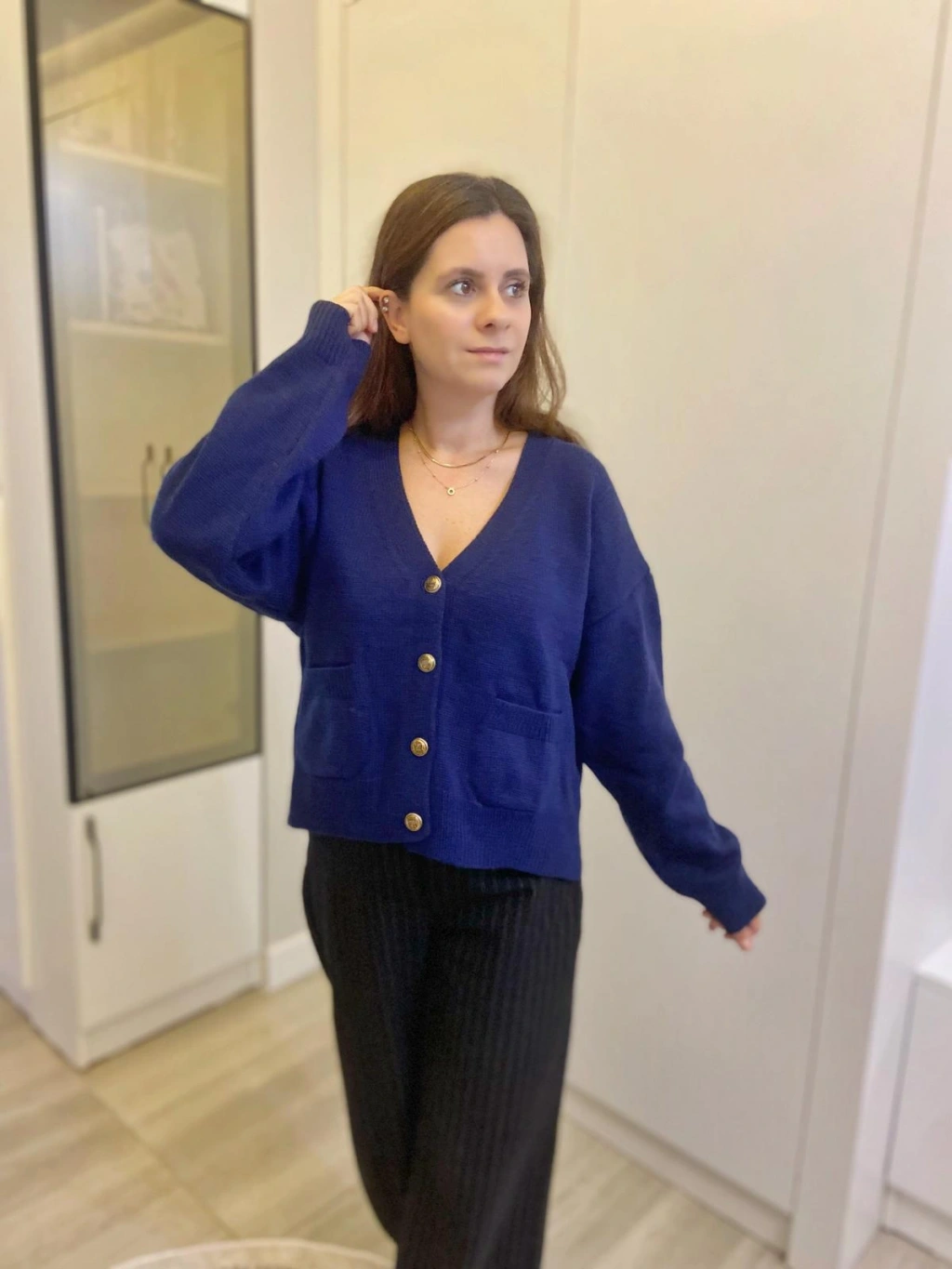 Lacivert Gold Düğmeli Hırka
