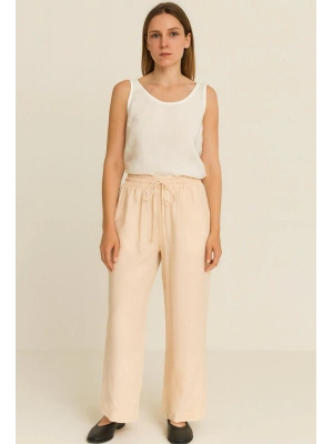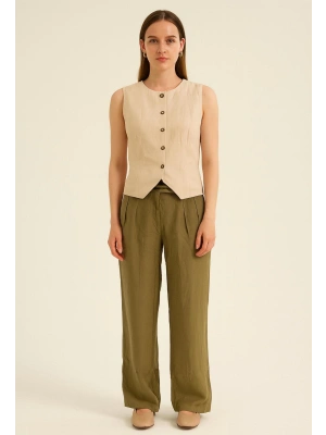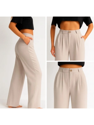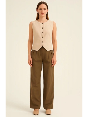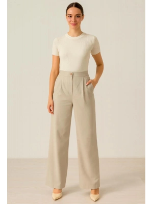 Düz Kemer Tek Düğmeli Bej Pantolon