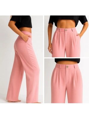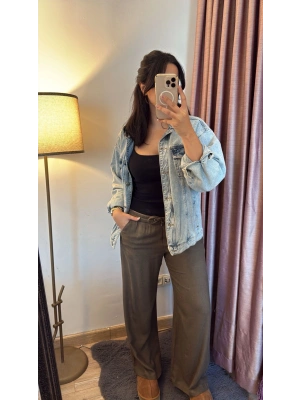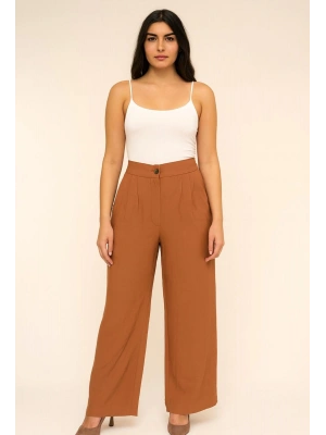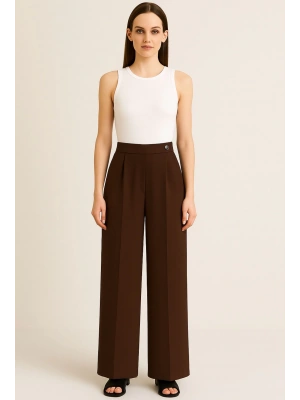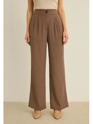 Üstü Pileli Tek Düğmeli Kahverengi Pantolon