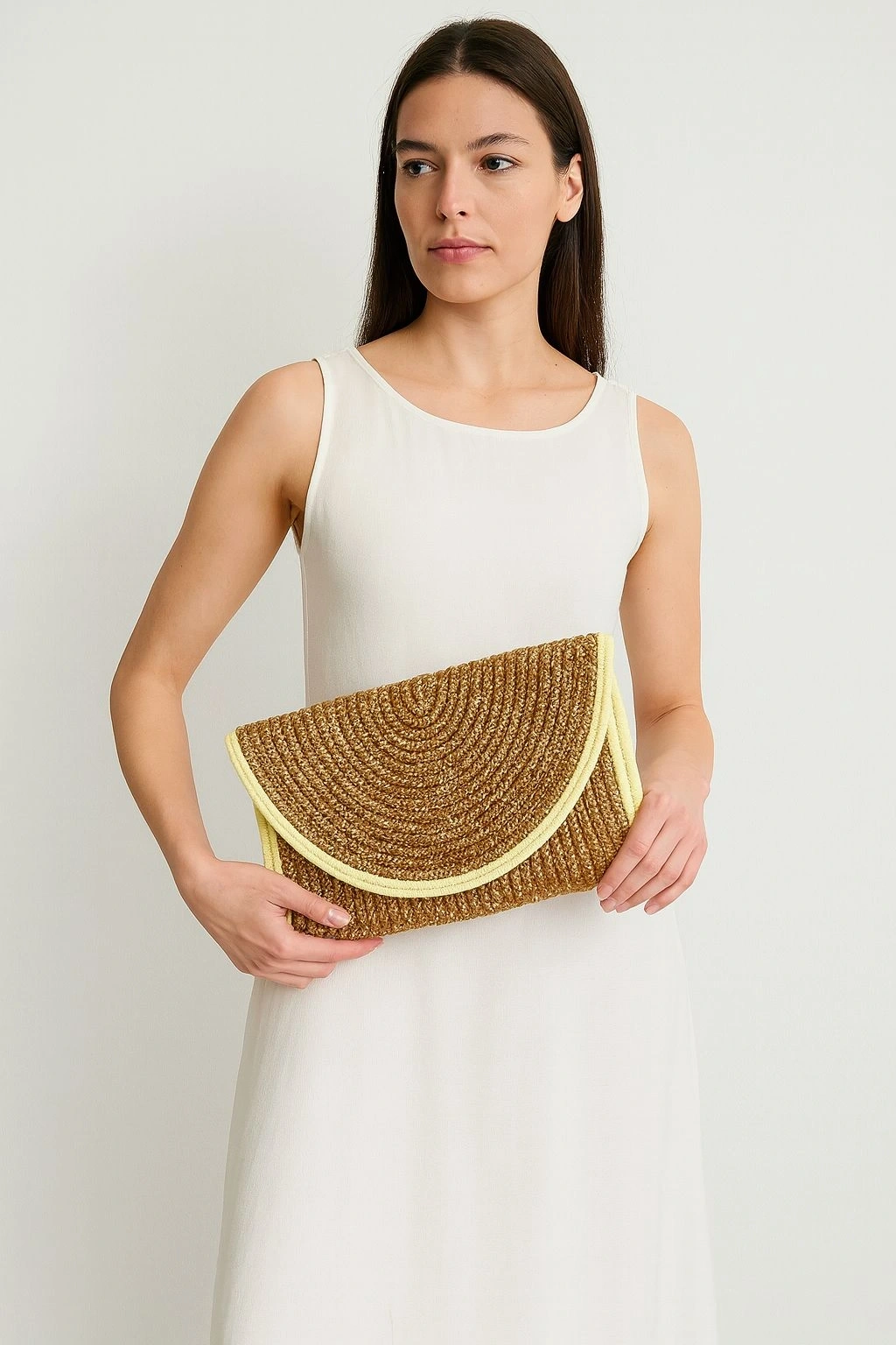 Sarı Detaylı Hasır Çanta