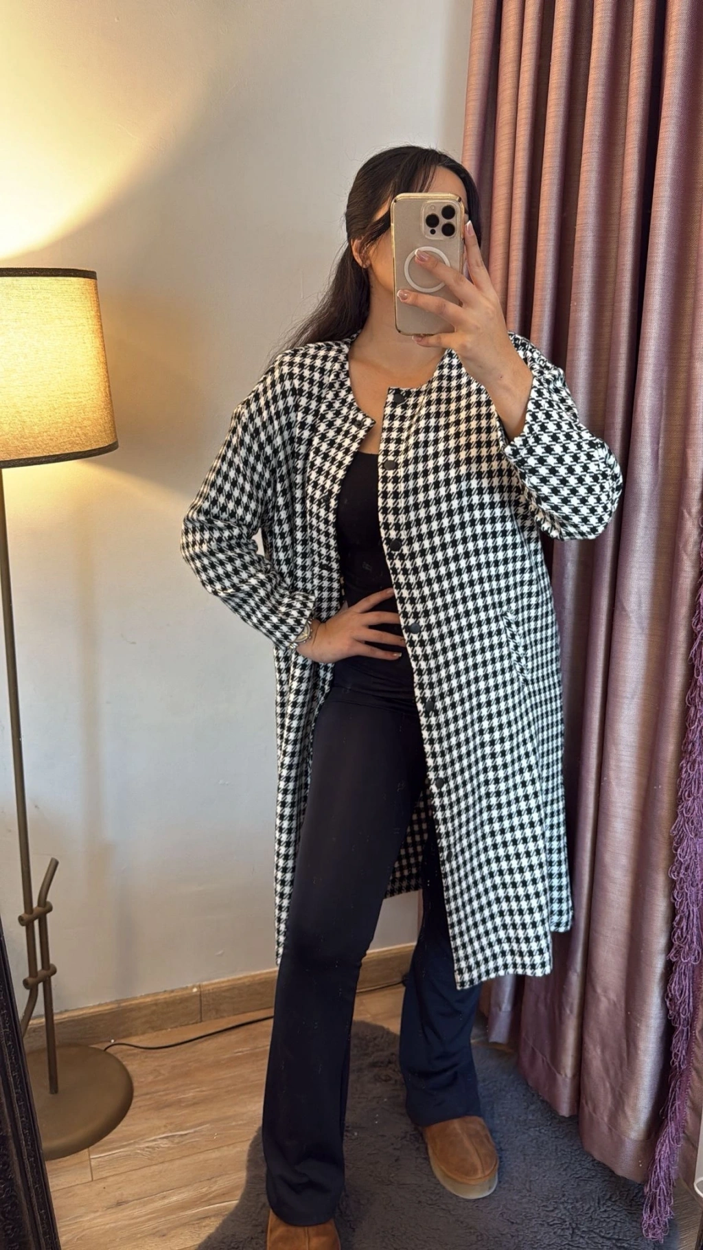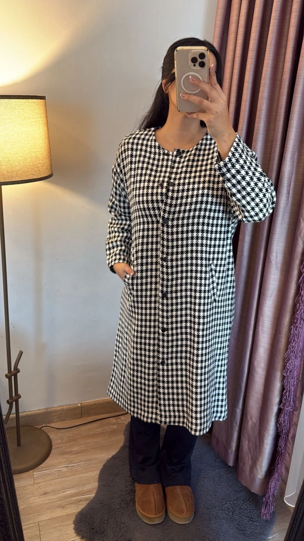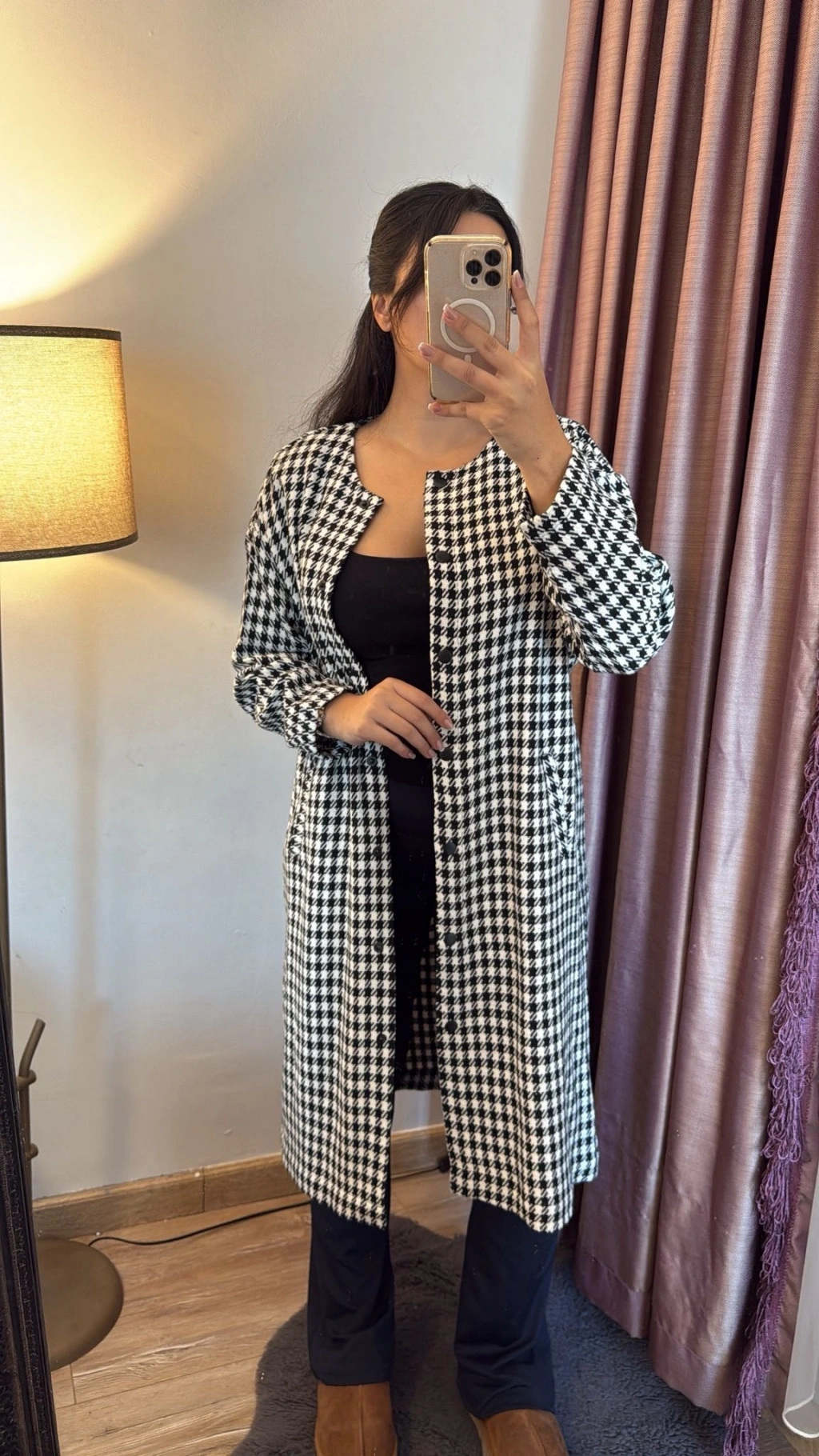 Siyah Kareli Uzun Elbise