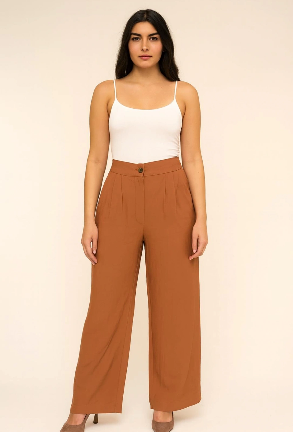 Düz Kemer Tek Düğmeli Bej Pantolon