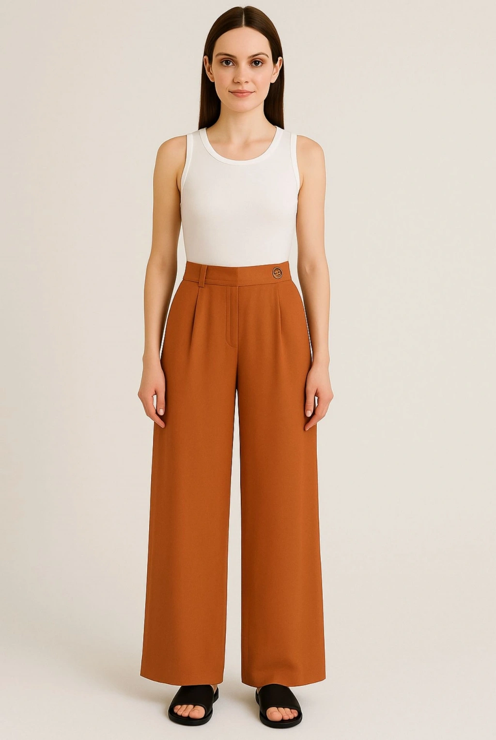 Düz Kemer Tek Düğmeli Bej Pantolon